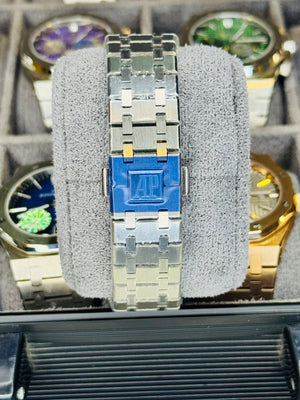 Upgrade your wrist game with this stunning AP Royal Oak Automatic Chronograph Watch, designed to combine luxury aesthetics with high-performance functionality. Featuring a bold gold-tone finish and the iconic octagonal bezel, this timepiece stands out with its sophisticated chronograph layout and premium craftsmanship.