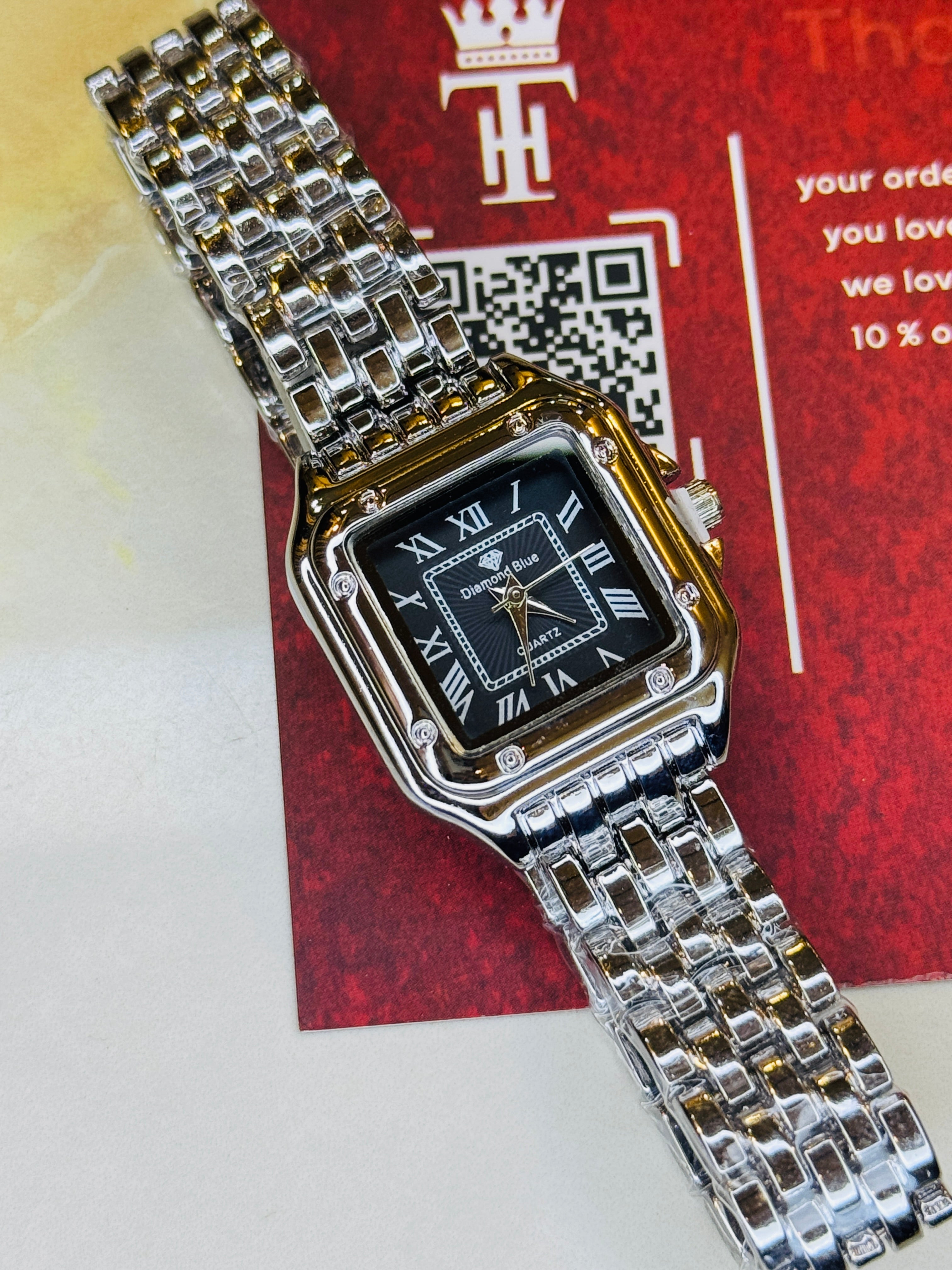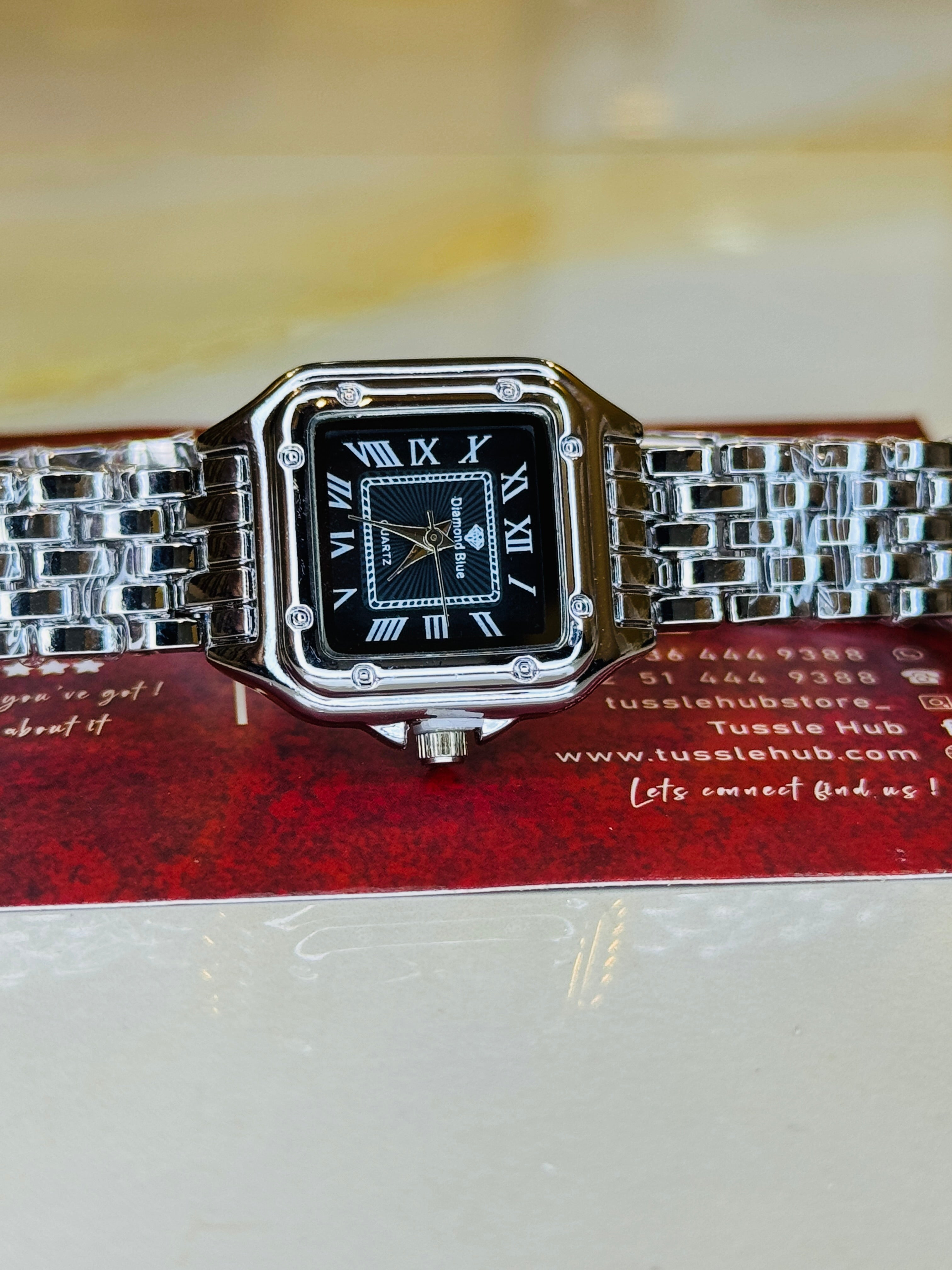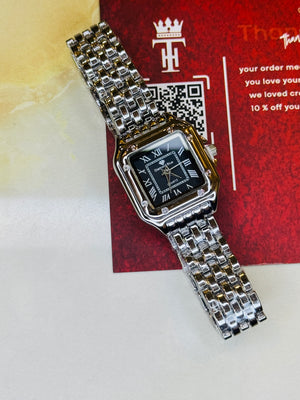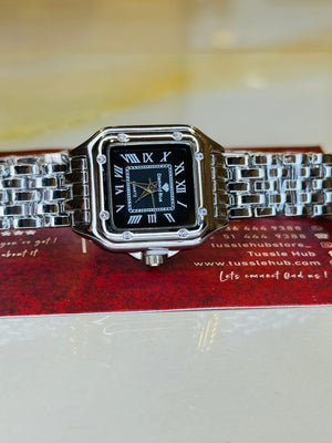 Silver Black Santos Watch For Her