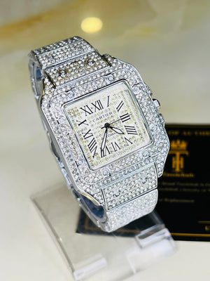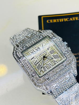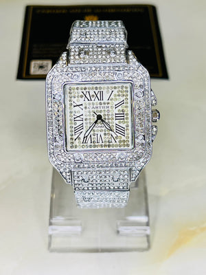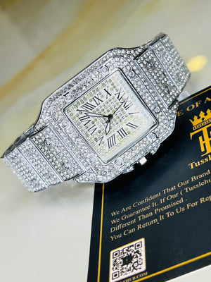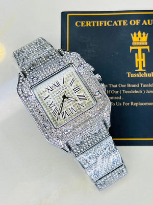 All Silver Square Tank Iced Out Watch