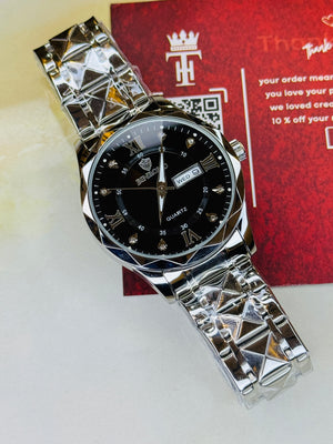 Silver Black Binbond Diamond Dial Watch