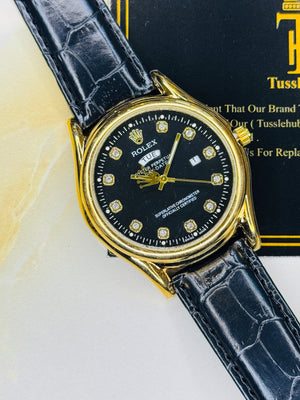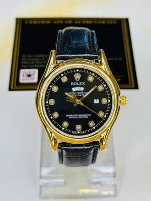 Black Gold Black Round Leather Rolex Watch