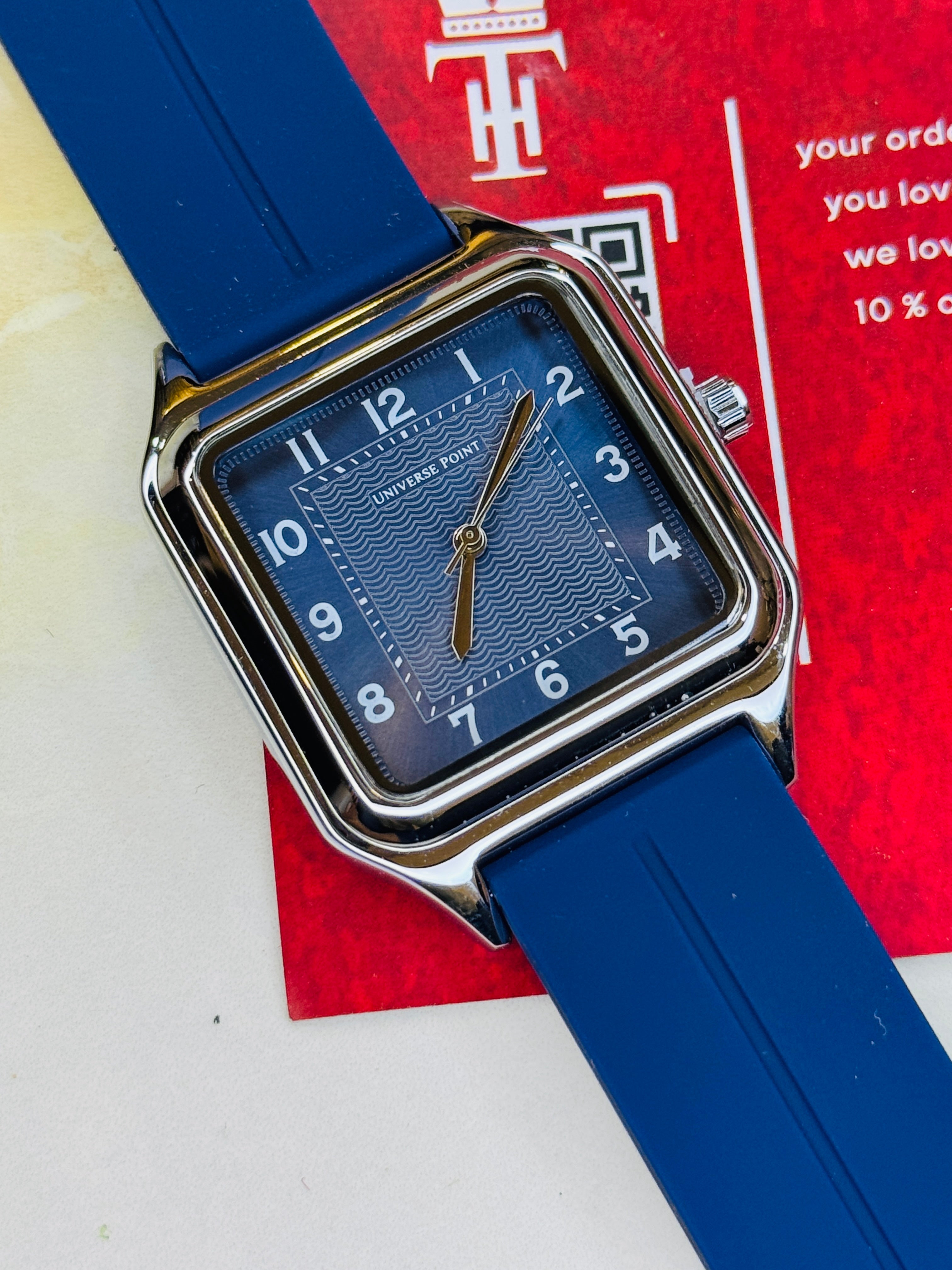 Blue Silver Slim Square Universe Point Watch