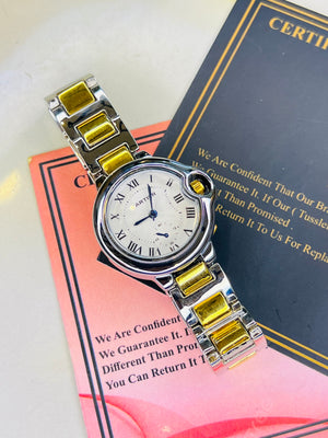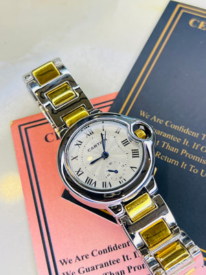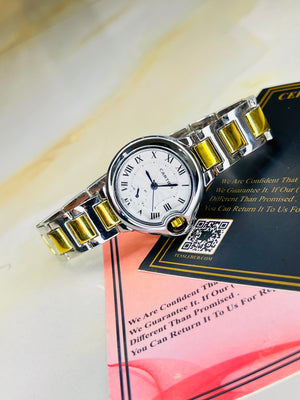 Cartier Silver Gold White Down Second Dial Watch For Her