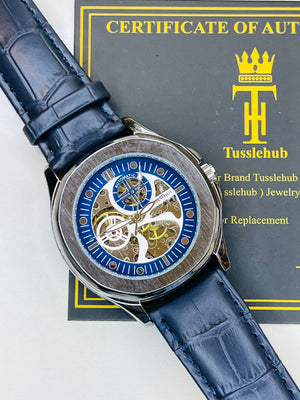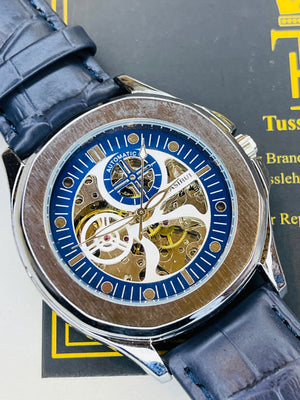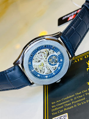 Casirui Blue Silver Automatic Skeleton Leather watch