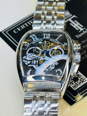 Chain Frank Muller Silver Black Chronograph Dial Watch