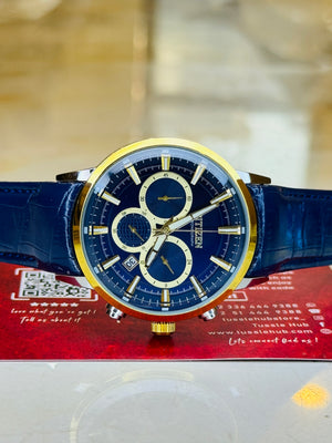 Citizen Globe Blue Gold Chronograph Watch