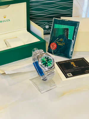 Date Just Silver Green Diamond Dial Quartz Master Clone Watch