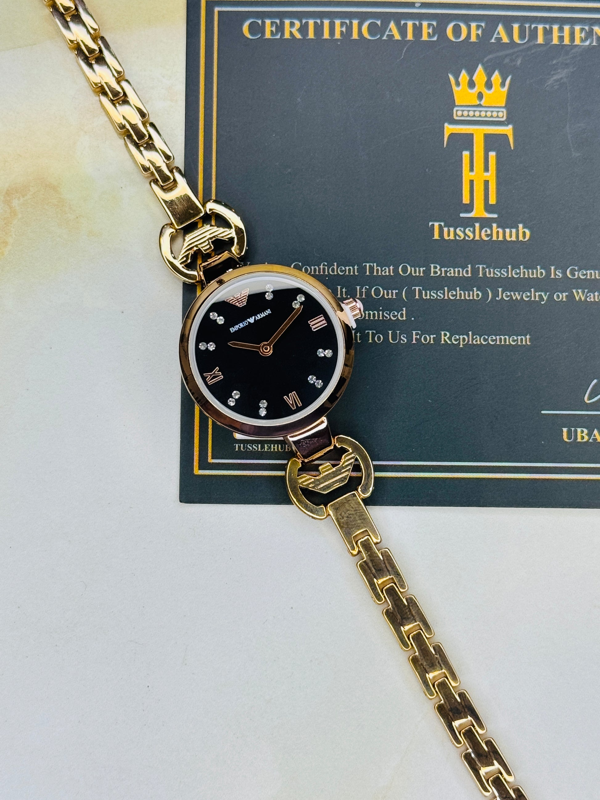 Emporio Rose Gold Black Watch for her