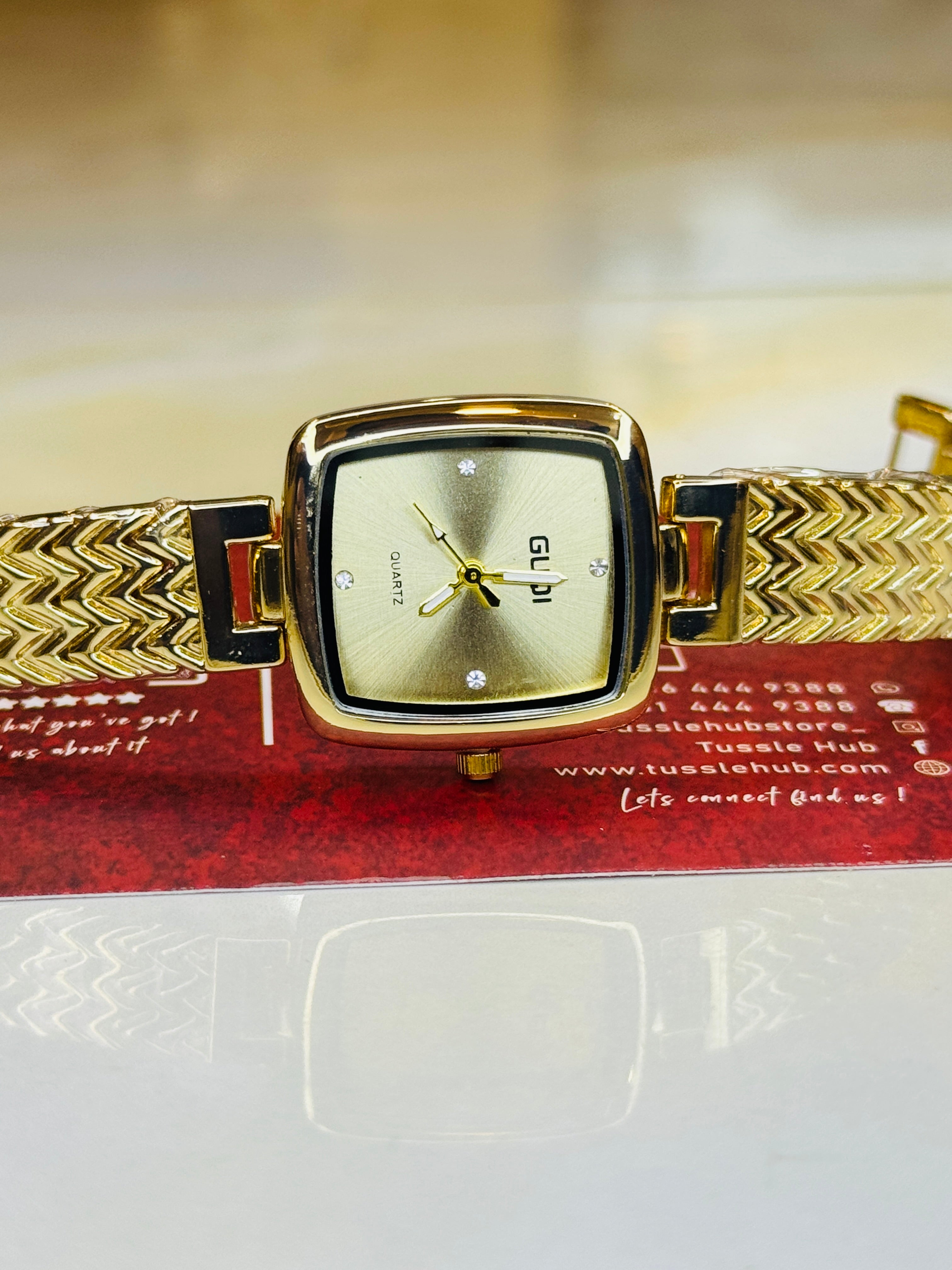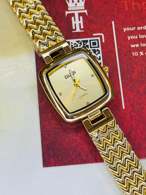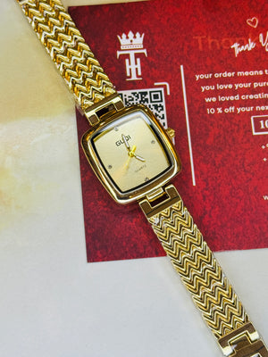 All Gold Guqi Square Watch For Her