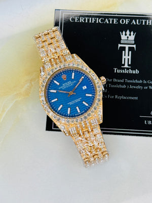 Rose Gold Sapphire Perpetual Iced Watch For Her