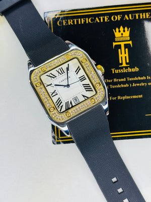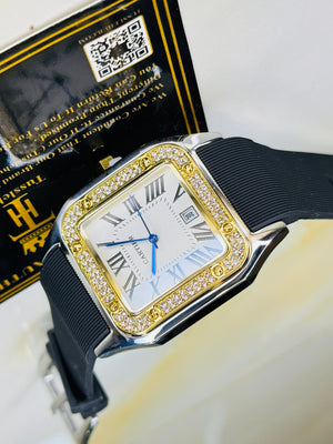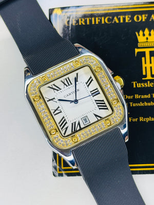 Two Tone White Iced Tank Silicon Cartier Watch