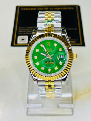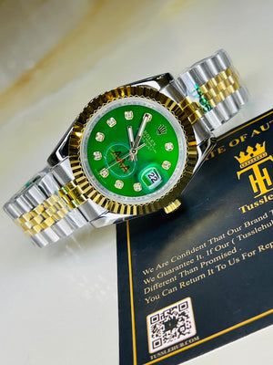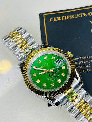 Jubilee Date Just Two Tone Fluted Bezel Emerald Dial Quartz Watch