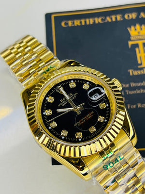 Jubilee Date Just Gold Fluted Bezel Black Dial Quartz Watch