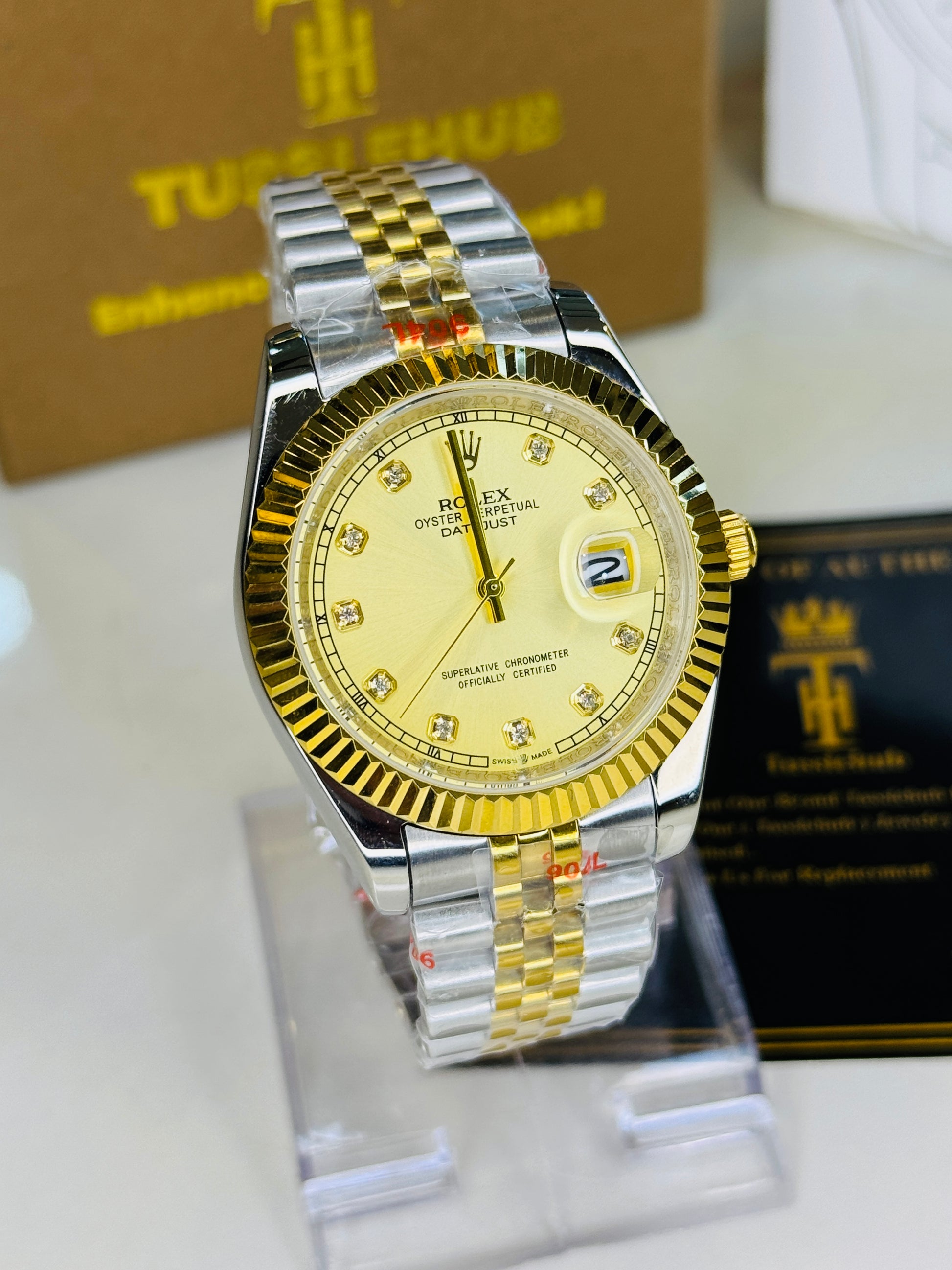 Jubilee Date Just Two Tone Diamond Fluted Gold Dial Quartz Watch