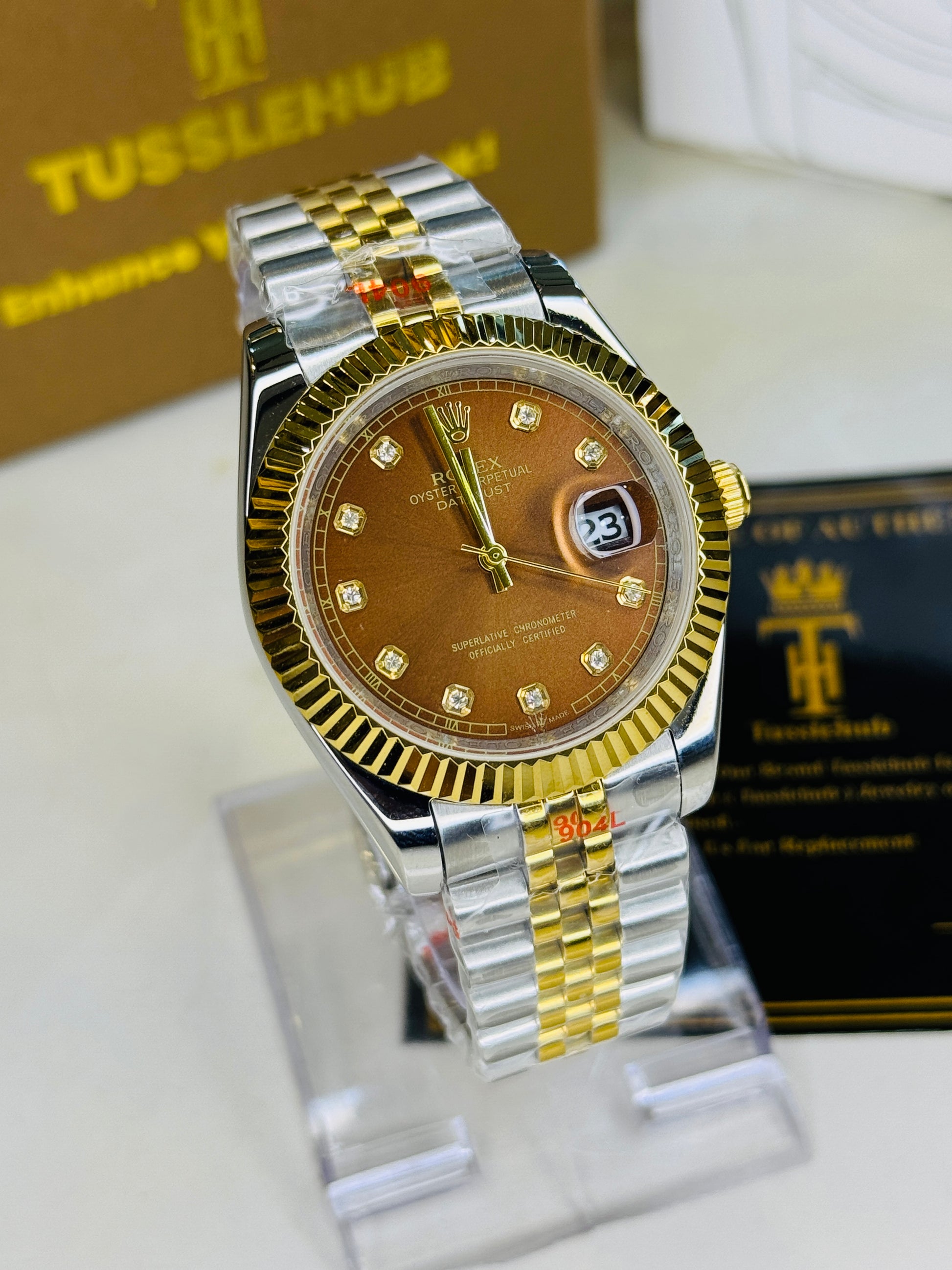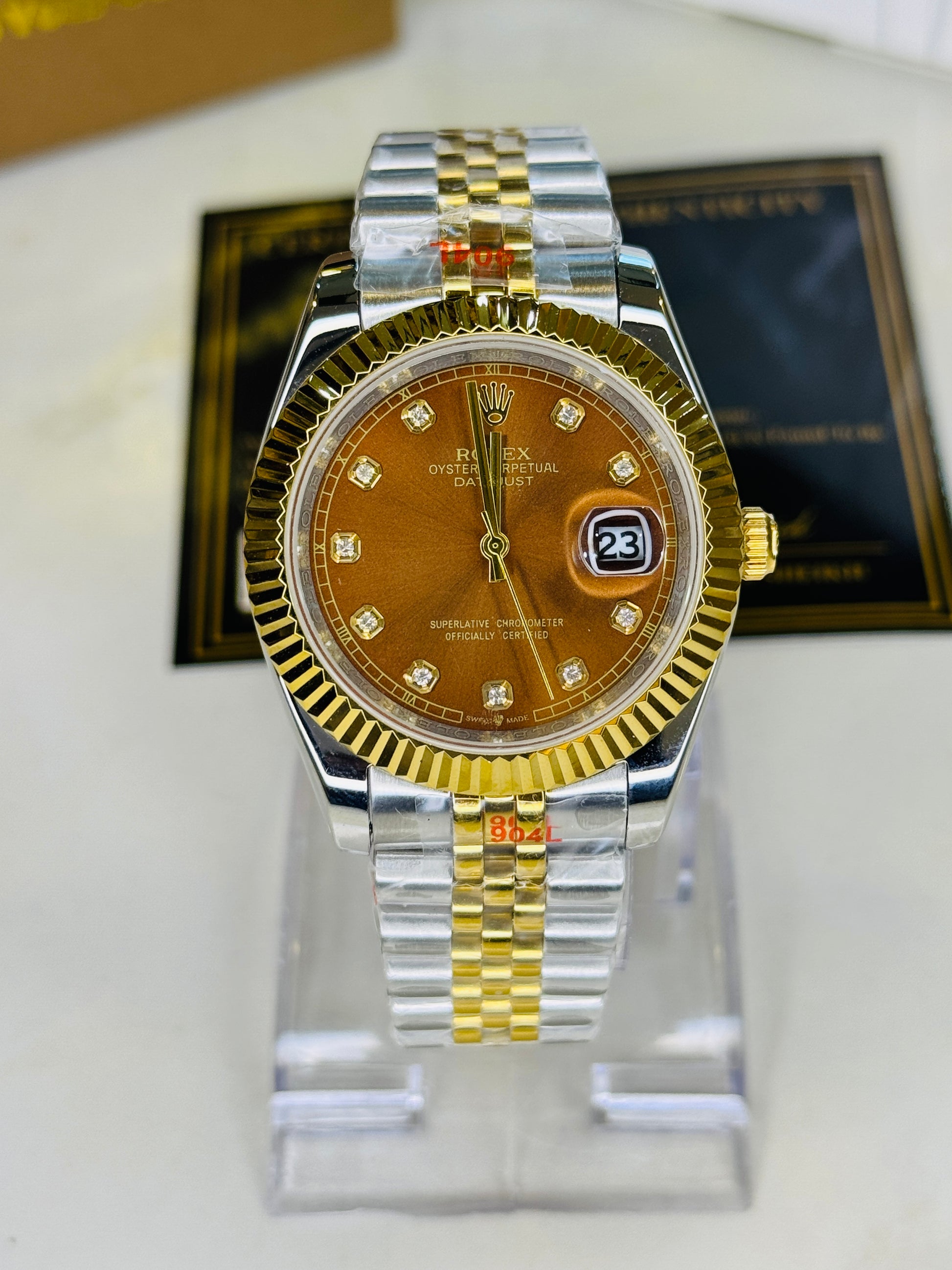 Jubilee Date Just Two Tone Diamond Fluted Chocolate Dial Quartz Watch