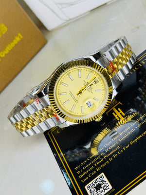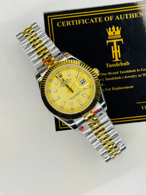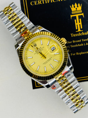 Jubilee Date Just Two Tone Vertical Fluted Gold Dial Quartz Watch
