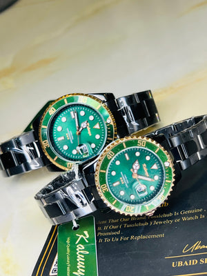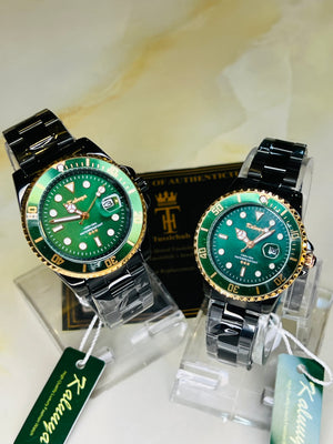 Kaluuya Black Green Rotating Bezel Couple Watches