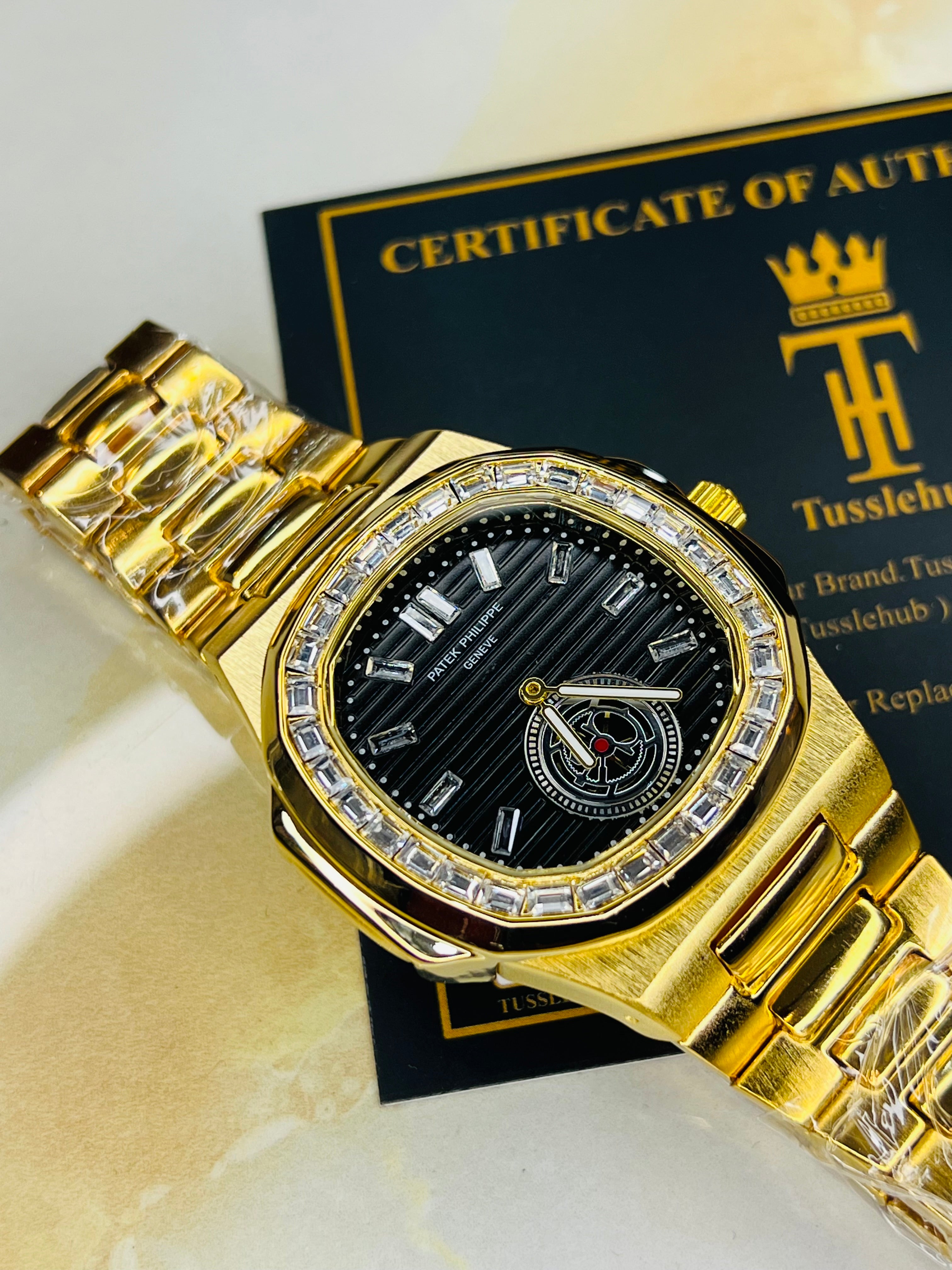 Nautilus Gold zircon Gems Down Second Watch