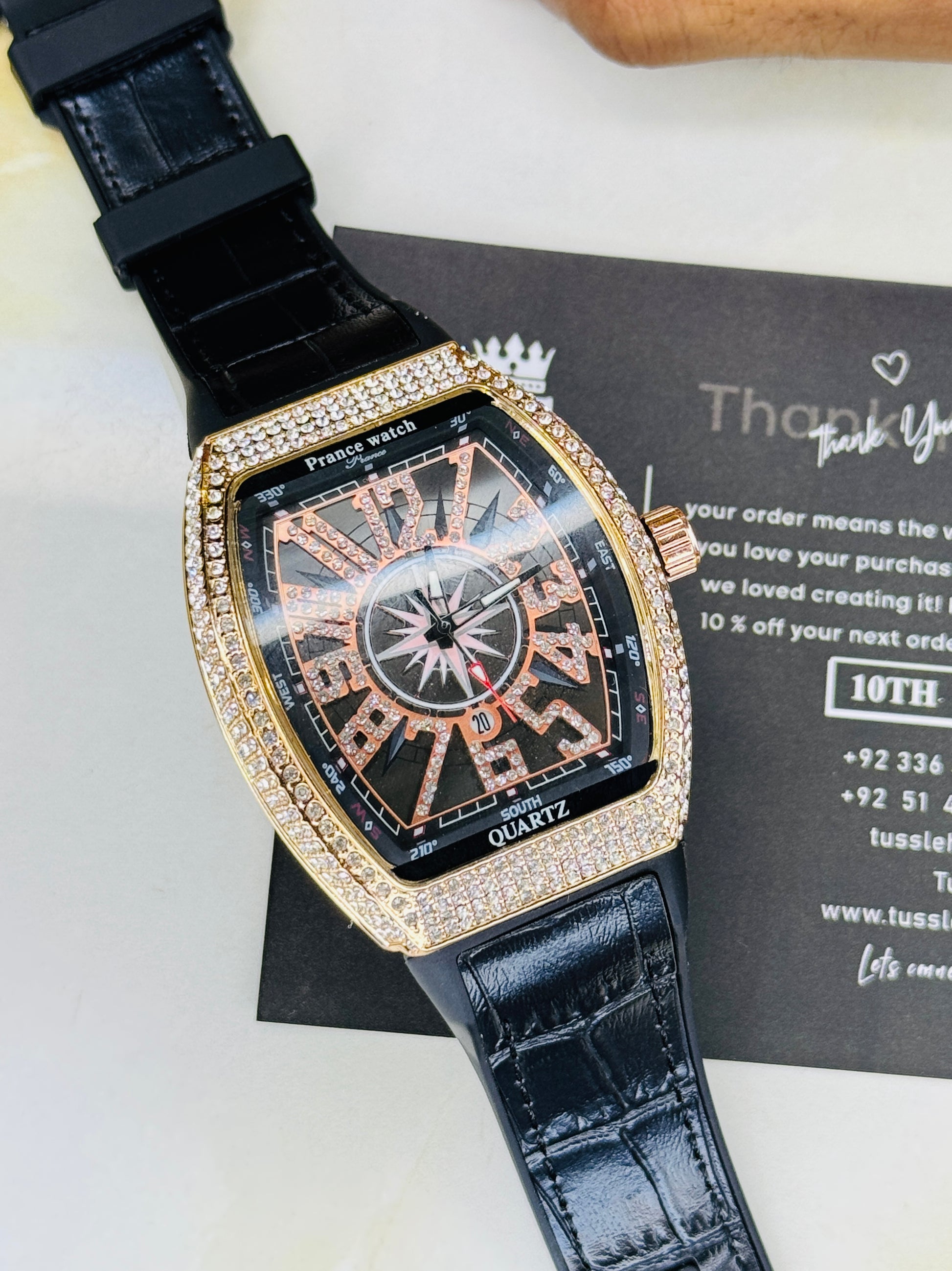 Vanguard Black Rose Gold Iced Frank Muller Watch