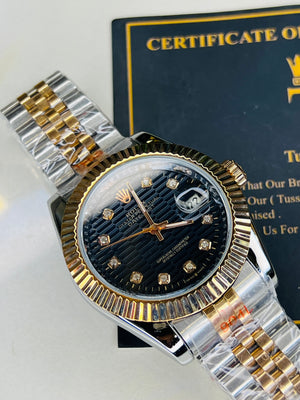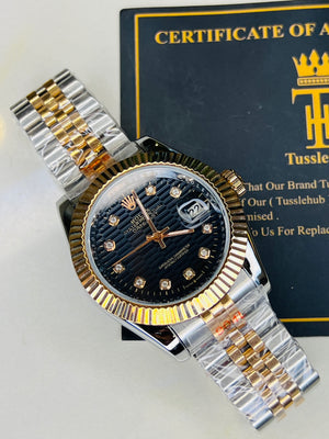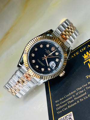 Jubilee Date Just Silver Rose Fluted Bezel Black Dial Automatic Watch