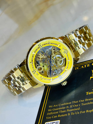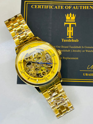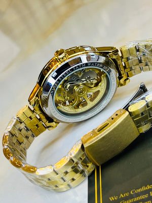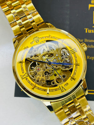 R-1 All Gold Chain Strap Skeleton Automatic Watch