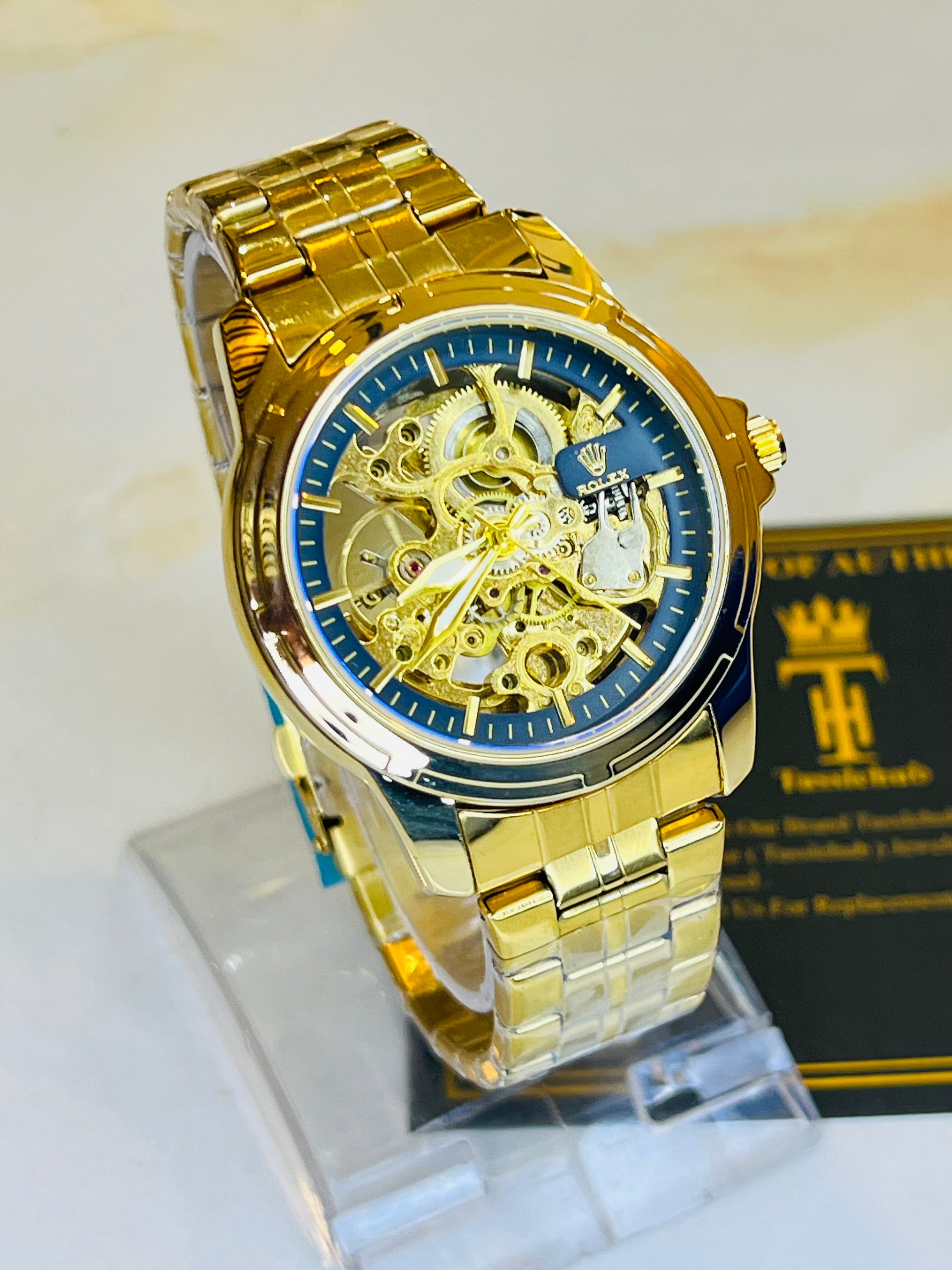 R-2 Gold Navy Chain Strap Skeleton Automatic Watch