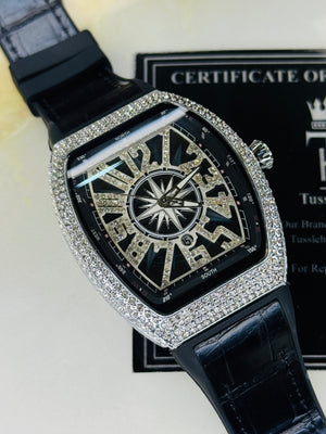 Vanguard Black Silver Iced Frank Muller Watch