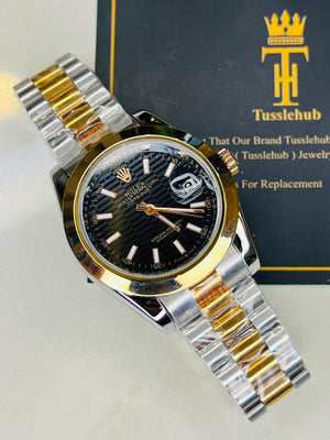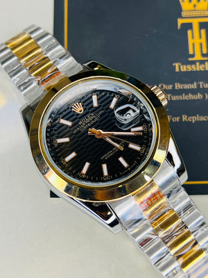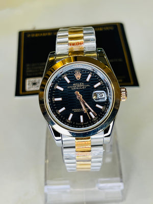President Date Just Silver Rose Plain Bezel Black Dial Automatic Watch