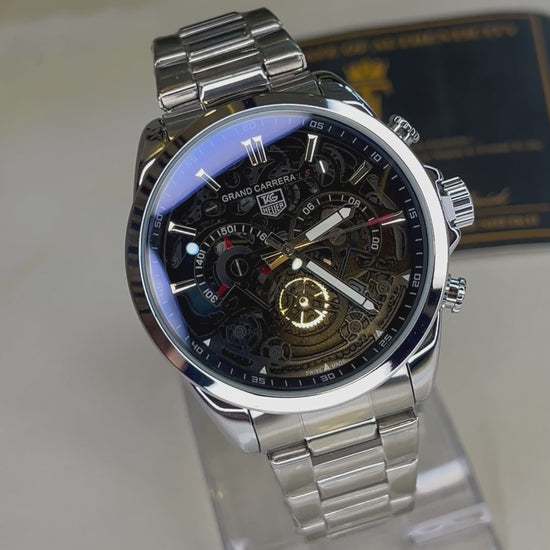 Silver Black Grand Carrera Chain Strap Chronographs Watch