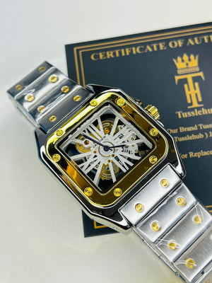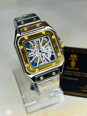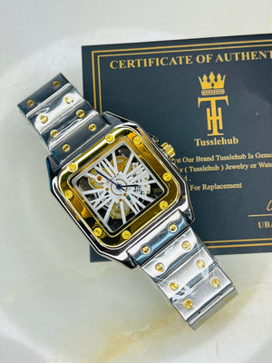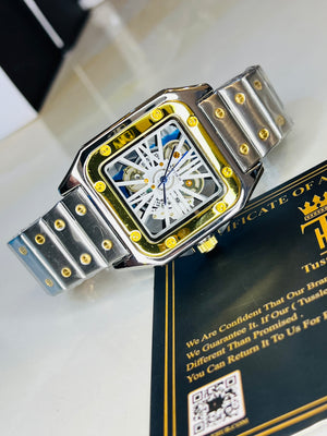 Two Tone White Dial Skeleton Santos Watch