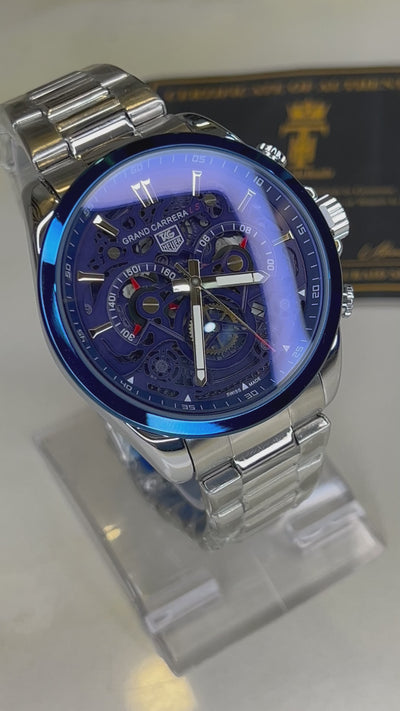 Silver Blue Grand Carrera Chain Strap Chronographs Watch