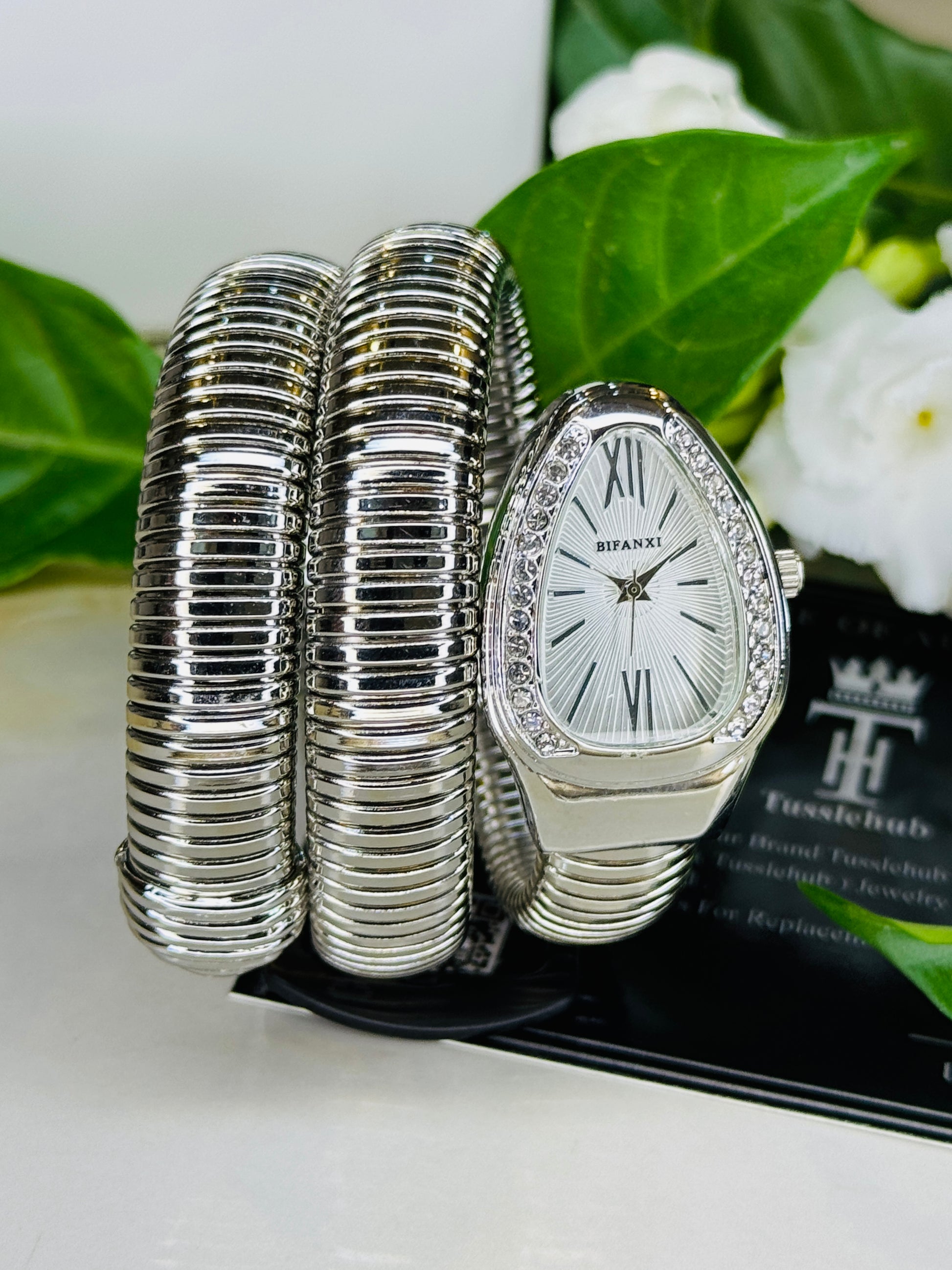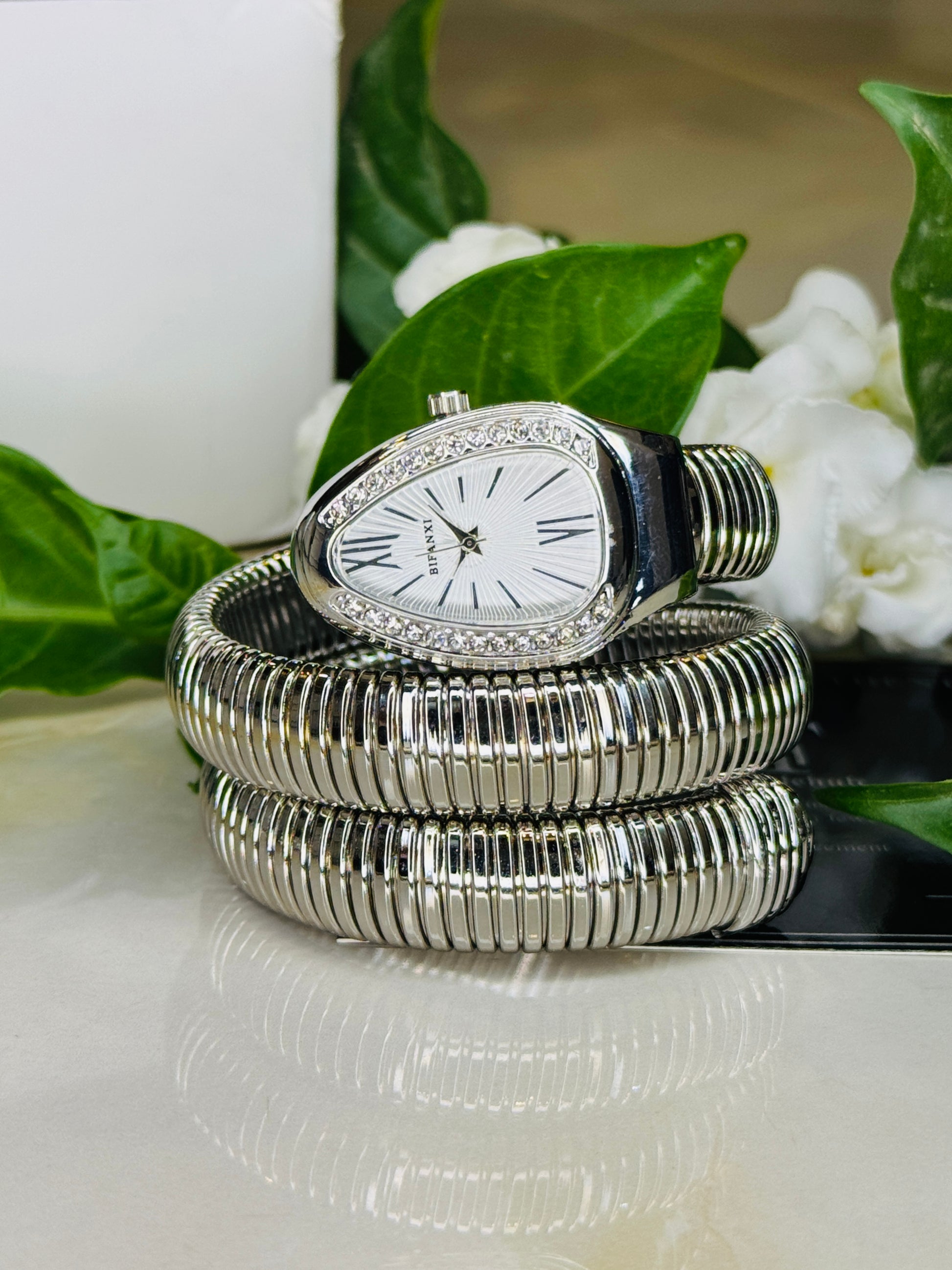 Silver White Serpentine Watch For Her
