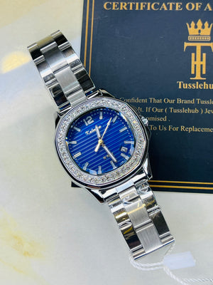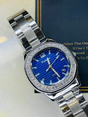 Silver Blue Nautilus Zircons Kaluuya Watch For Her