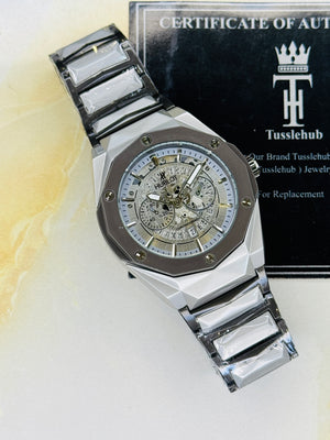 Two Tone Prism Chain Strapped Silver Hologram Dial Hublot Watch