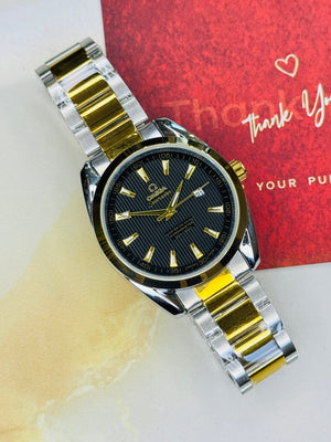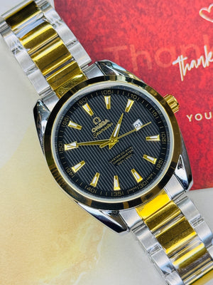 Two Tone Black Chain Strapped Omega Sea Master Watch