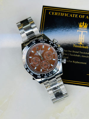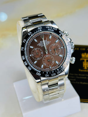 Silver Chocolate Daytona Chronograph Chain Strap Master Clone Watch
