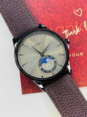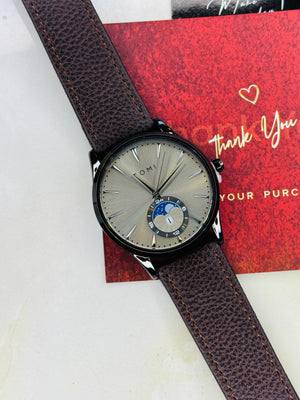 Tomi Coffee Grey Leather Magnetic Strap Watch