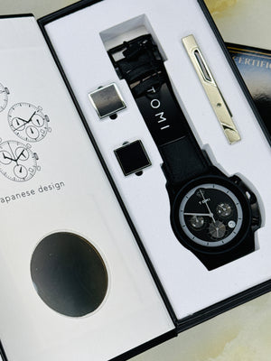 Box Includes : Tomi Watch , Tie Clip and Cuff links