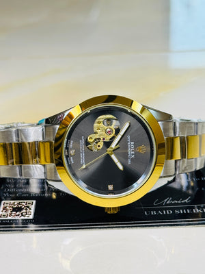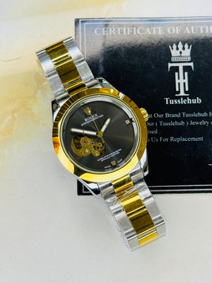 Two Tone Metallic Hawk Eye Automatic Rolex Watch