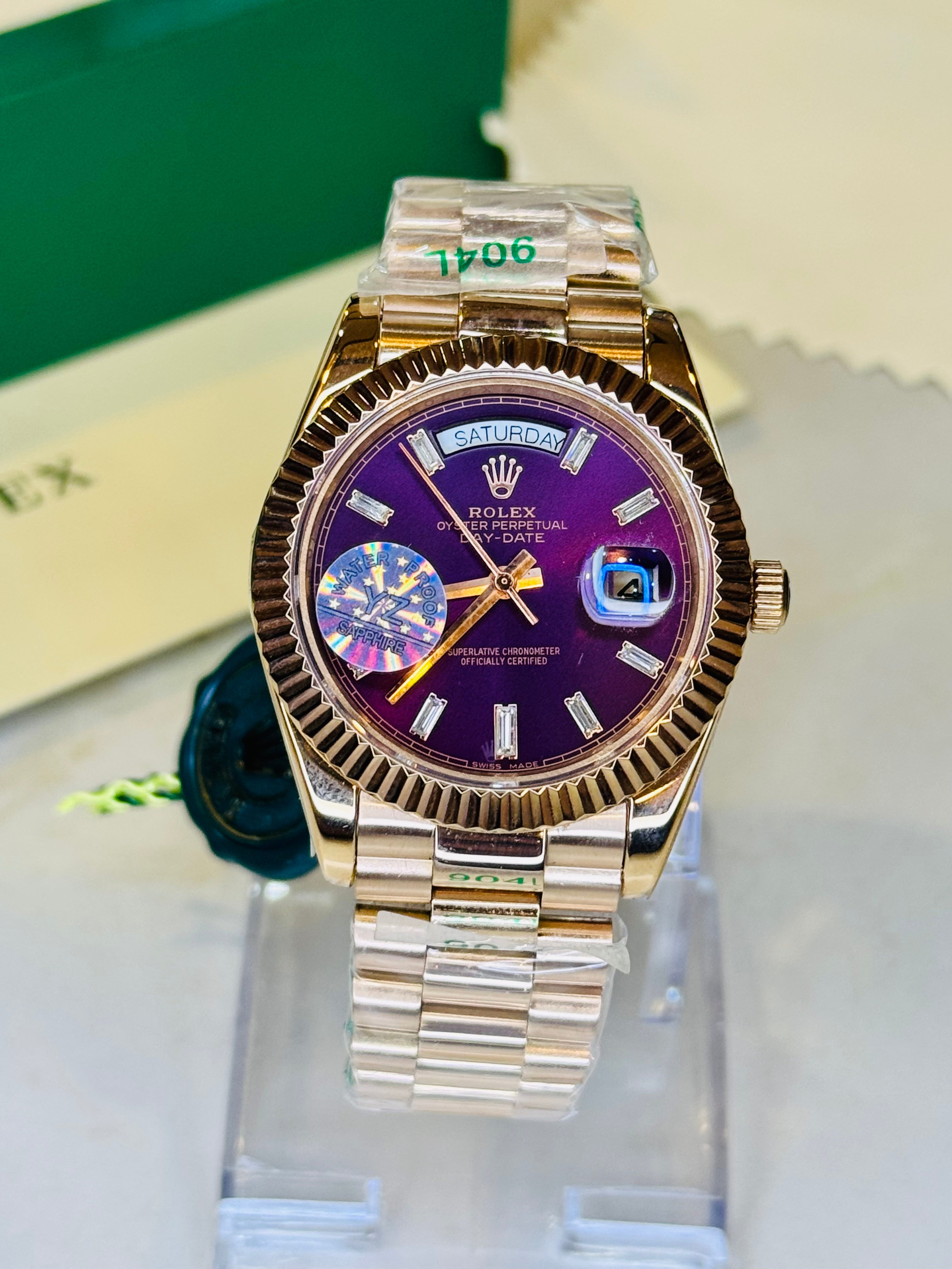 Day Date Rose Gold Indigo Dial Automatic Super Clone Watch