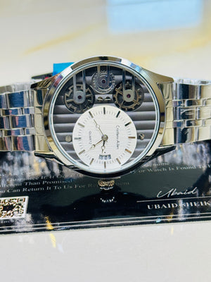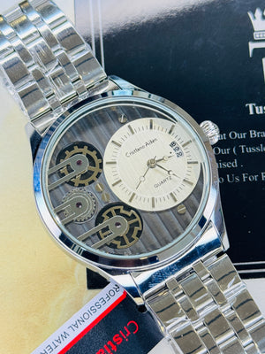 Silver Cristiano Aillen Black White Dial Dual Gear Watch