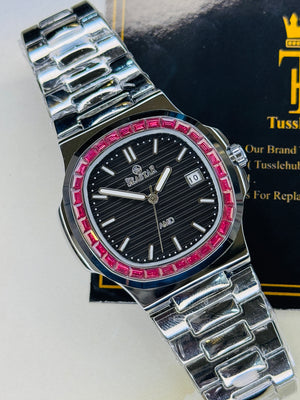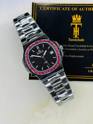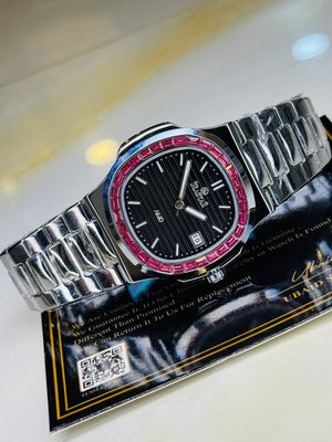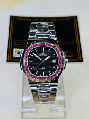 Slim Silver Black Ruby Zircon Seastar Watch