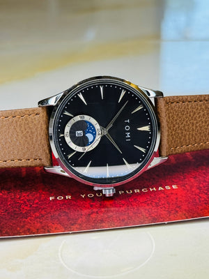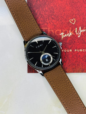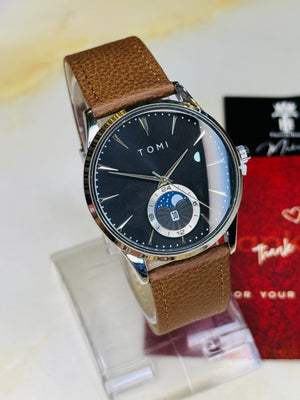 Tomi Brown Silver Leather Magnetic Strap Watch