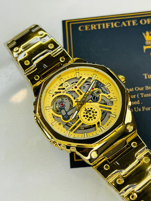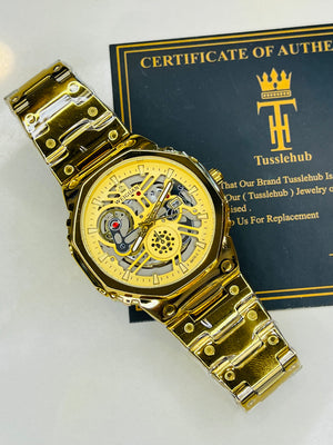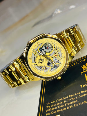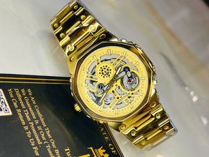 Weiguan Gold Skeleton Dial Watch